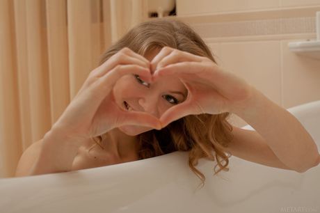 Met Art: تزيل المراهق الجذاب في سن المراهقة أزيل ثوبها الأسود لتشكل عارية في الحمام