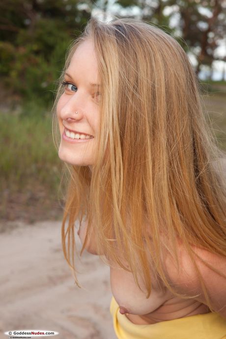 Goddess Nudes: الشقراء في سن المراهقة Valeka يحصل عارية على طريق رملي ويطرح في العارية