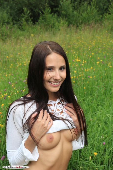 Goddess Nudes: امرأة سمراء فاتنة فانيسا أنجيل تتباهى بحمارها الكبير والكس الأصلع في الهواء الطلق