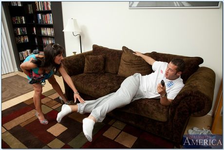 Naughty America: مفلس MILF Sarah Bricks يحصل عليها كس حلق مارس الجنس hardcore