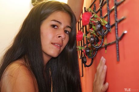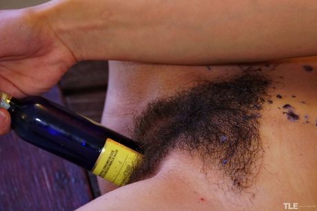 The Life Erotic: في سن المراهقة ذات الشعر الداكن ديزي ب يشرق بوسها المشعر على طاولة في العارية