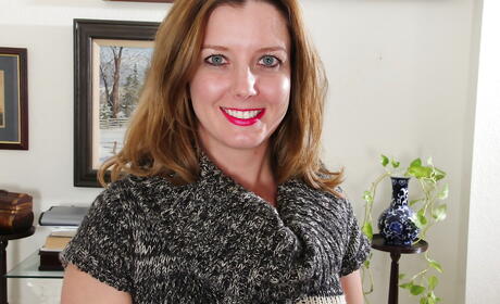Karups Older Women: براقة MILF Deliliah Stevenson Bares Big Knockers و Shaved Pussy