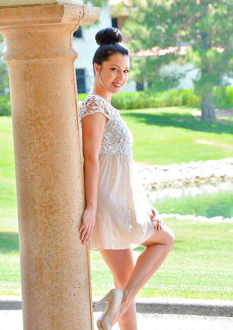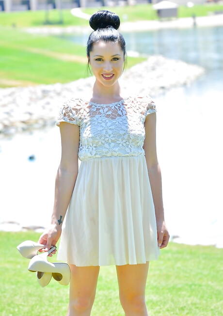 FTV Girls: تمنع Hottie Carrie ذات الشعر الداكن الساخن مؤخرتها في التنورة وتستمني مع لعبة الجنس بالخارج