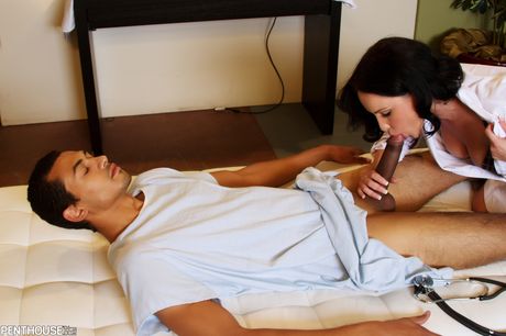 Penthouse Gold: الممرضة الساخنة كاتي سانت آيفز تحصل على كسها المشعر مارس الجنس من قبل المريض