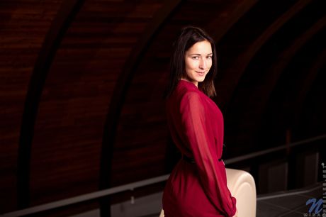Nubiles: يزيل المراهق الجميل مينا فستانًا أحمر قبل العادة السرية على السرير