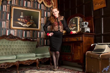 Anilos: ربة البيت ذات الشعر الأحمر تيا جونز تزيل ملابسها الداخلية والجوارب