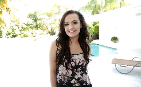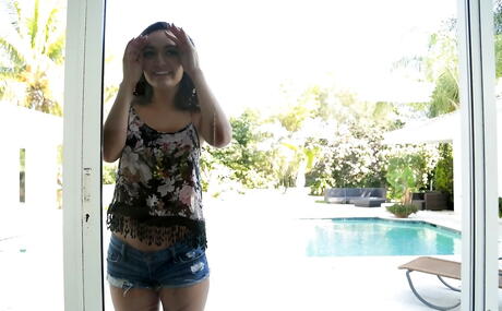 Cum Fiesta: امرأة سمراء أمريكية مثير شارلوت كروس تمتص قضيب كبير واتخذها ومارس الجنس بقوة بالقرب من المسبح