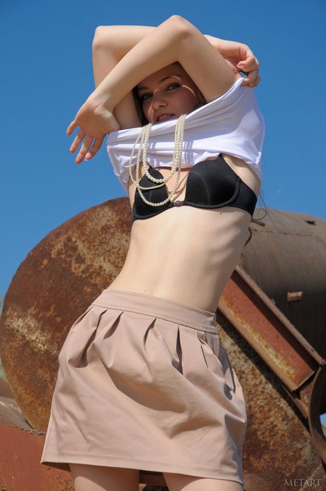 Met Art: مثير الشقراء في سن المراهقة بريدجيت شرائط لها الملابس الداخلية وتطرح عارية في الهواء الطلق