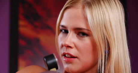 Wet And Puffy: الذهب الشقراء المجرية الرائعة في سراويل الذهب في سراويل تكشف عن الثدي الصغيرة ولعب بوسها