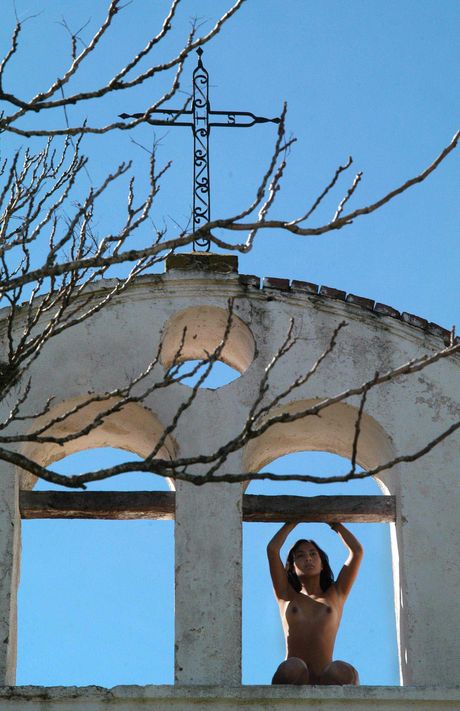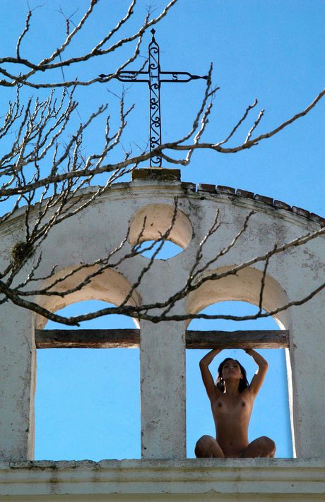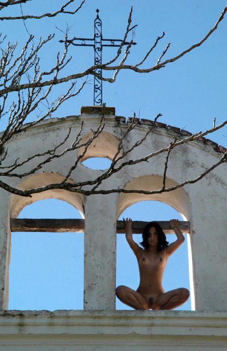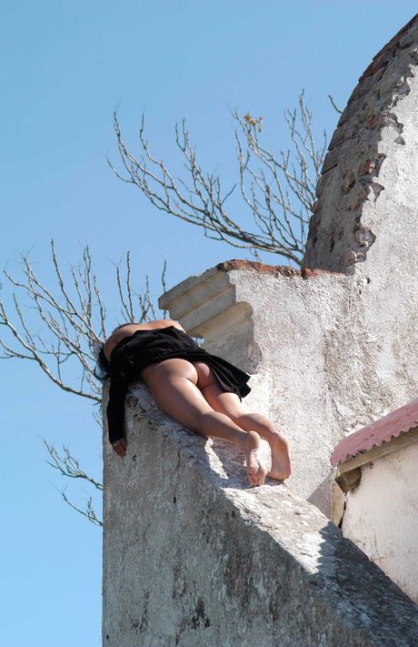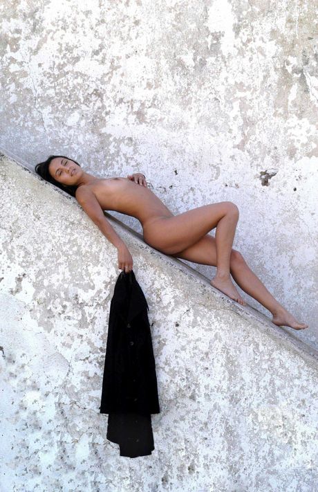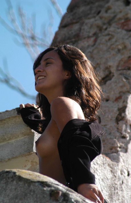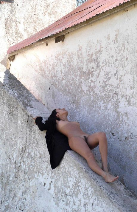 The Life Erotic: مراهق نحيف مع الثدي الصغيرة وجمل أصلع يطرح عارية على شرفة