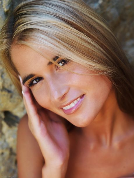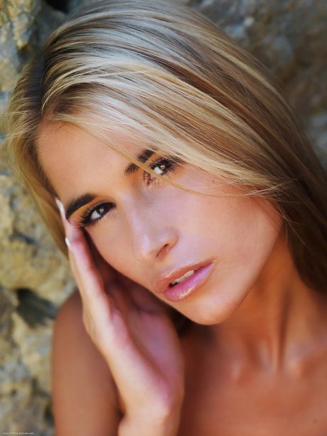 Errotica Archives: امرأة سمراء طويلة Nessa تطرح عارية على شاطئ صخري وتظهر كسها الحلاقة