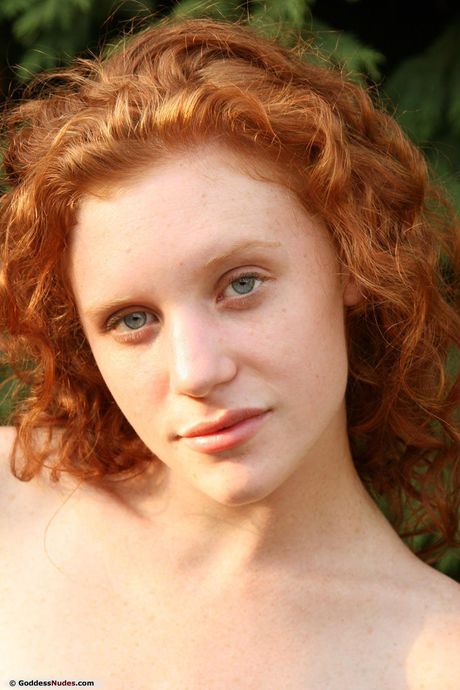 Goddess Nudes: الزنجبيل في سن المراهقة رفيع مع الثدي الصغير وجمل أصلع يطرح عارية على الأرض