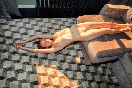 Watch 4 Beauty: Bedårende teen Sophy Angel afslører sin nøgne form i et par hæle på et trægulv