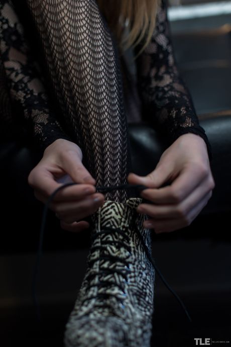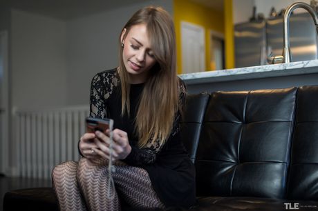 The Life Erotic: Alex Blake striber til hendes strømpebukser og gnider hendes fisse på sofaen