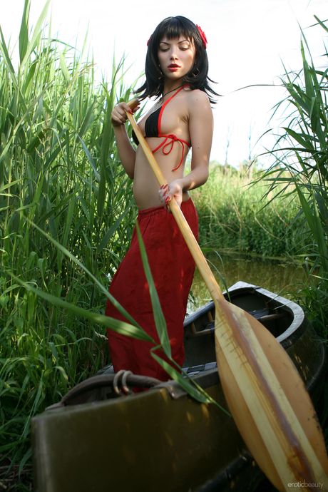 Erotic Beauty: Lokurerende teen Monika e striber hendes sorte kjole og viser hendes store bryster & skaldet fisse
