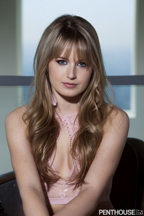 Penthouse Gold: Blond Beauty Scarlett Sage viser hendes dejlige bryster og lyserød fisse i lingeri