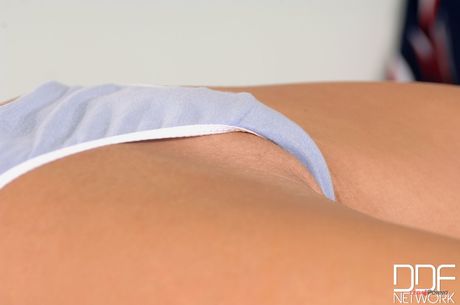 Porn World: Blonde cheerleader Tiffany Rousso legetøj hendes barberede fisse efter at have strippet