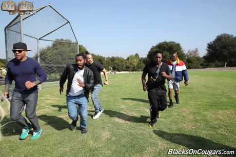 Dogfart Network: Blonde Cougar Cindy Crawford bliver gangbanged af sorte mænd i en park