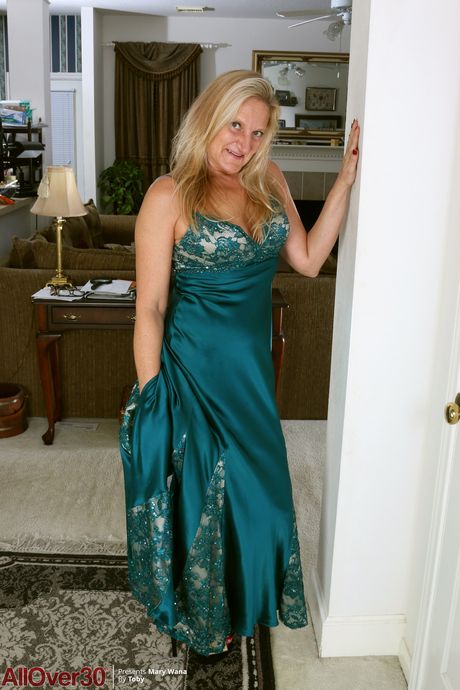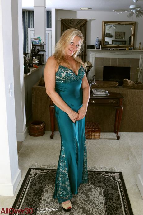 All Over 30: Blonde moden Mary Wana viser sine store bryster og spreder sin modne fisse