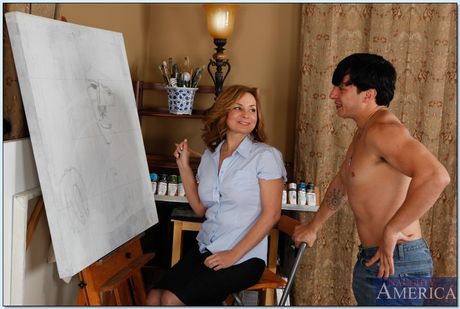 Naughty America: Blonde Milf Rebecca Bardoux viser frem hendes store bryster og barberet kusse