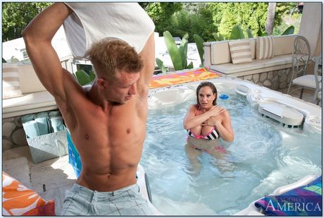 Naughty America: Blonde milf med store bryster Tyler Faith får hendes twat kneppet i et soveværelse