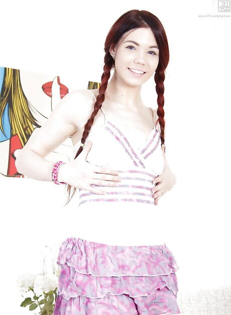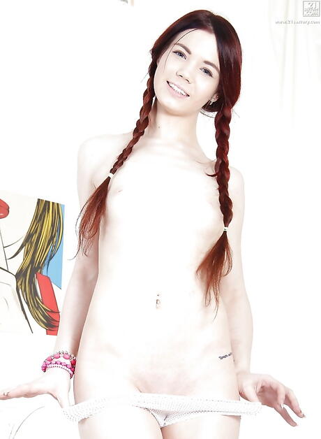 Butt Plays: Nysgerrig rødhåret babe Lovenia Lux barer hendes røv i sexede trusser og leger med dildo