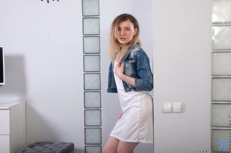 Nubiles: Sød teen liza røg legetøj hendes barberede fisse med en dildo i sit soveværelse