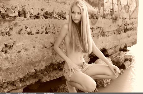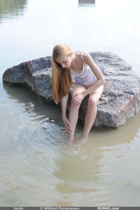 Domai: Delikat teen Jenja med små bryster og skaldet fisse poserer nøgne på gulvet