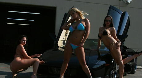 Pornstars Like it Big: Fremragende Women Shyla Stylez, Gianna Michaels og Carmella Bing Posing Nude Outdoor