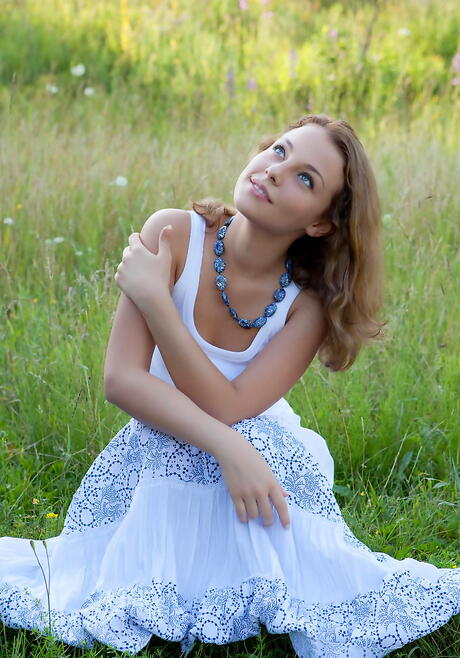 Met Art: Foxy Young Nikia A in Fancy Nederdel afslører små bryster og sexet røv udenfor