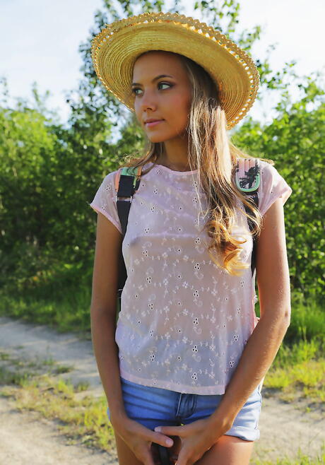 Met Art: Hot Blonde Teen Katya Clover afslører små bryster og spreder hendes ben udendørs