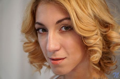 Nubiles: Hot Teen Milana Laurence afslører hendes store bytte og gnider hendes fisse