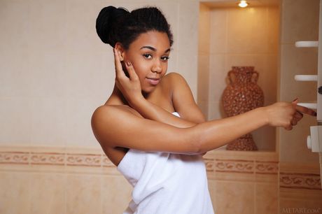 Met Art: Mager teenager Gana befugter hendes fisse, mens hun tager et bad