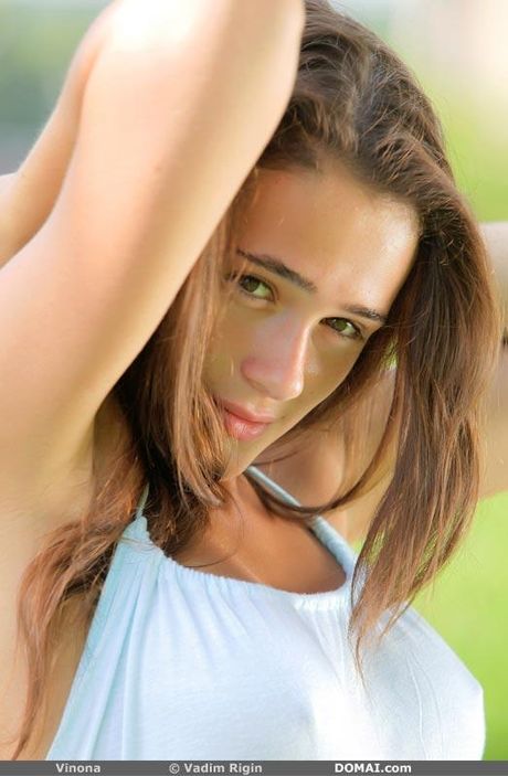Domai: Lean Teen Vinona poserer nøgen i vandet og på sandstranden