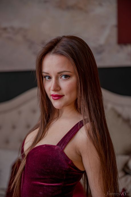Stunning 18: Dejlig teen alice e fjerner sort lingeri for at blive nøgen i sit soveværelse