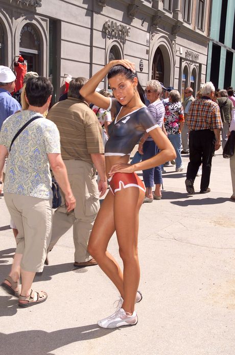 ALS Scan: Petite teen Madison poserer nøgen offentligt og får hendes fisse slikket forbi