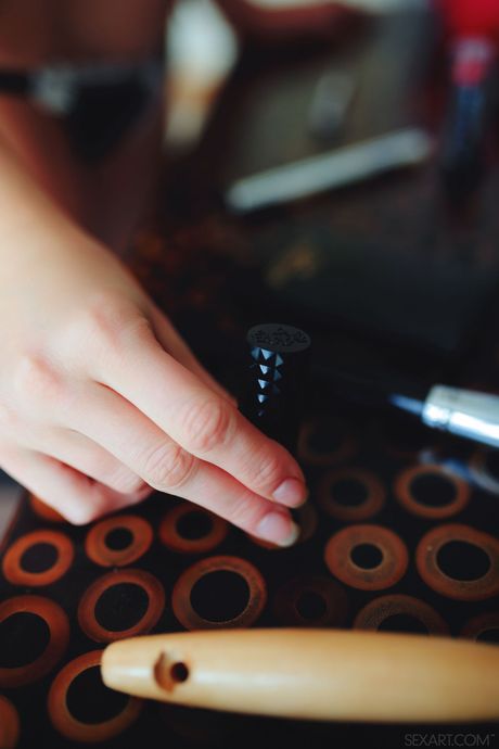 Sex Art: Sexet blond nika n fingre hendes fisse i sorte strømper og bydel