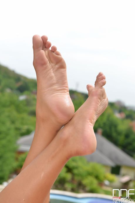 Porn World: Sexet tjekkisk koko de mal legetøj hendes barberede fisse på balkonen og viser hendes fødder
