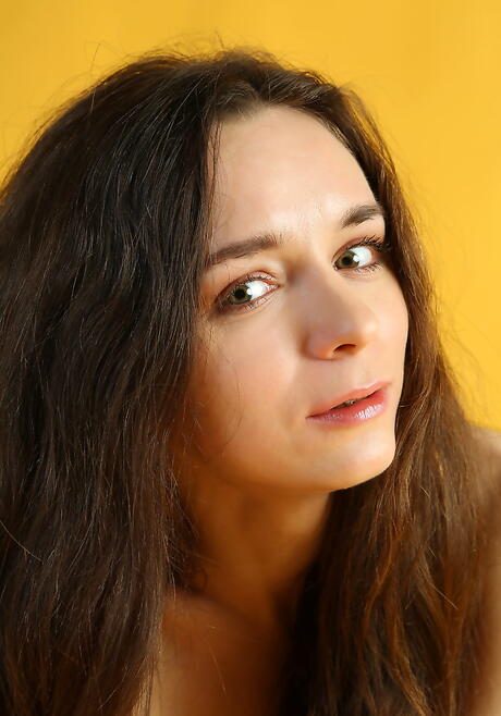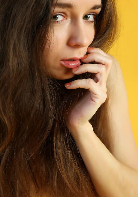 Rylsky Art: Slim mørkt hår teen iris i sexede strømper, der afslører små bryster og behårede twat