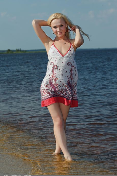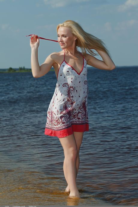 Domai: Solo -pige Leona bliver nøgen på en stenet strand