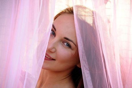 Met Art: Ukrainsk babe Ledona viser sine store bryster og poserer nøgen udendørs