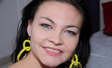 Cum Fiesta: Meget attraktiv amerikansk Nikki Bell sugende varm stor skaft og tager et spermskud på ansigtet