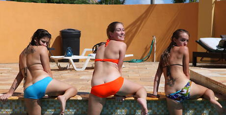 Girlfriend Revenge: Meget attraktive piger Nina, Amber og Alexis Paige i skør orgie nær poolen
