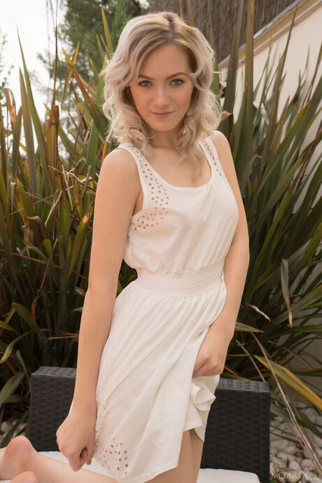 Met Art X: Ung blonde Kate friske barer hendes krop, før hun fingrer hendes fisse på en gårdhave