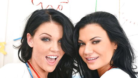 Hot Legs and Feet: Attraktive Hotties Emma Leigh und Jasmine Jae in heißen Strümpfen, die heiße Fotzen im heißen lesbischen Sex lecken