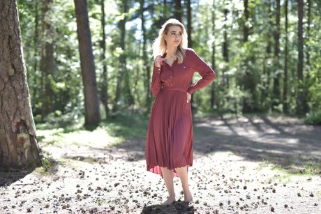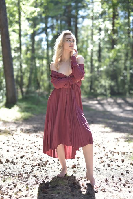 Erotic Beauty: Die Ava -Liste nimmt ihr langes Kleid aus und präsentiert ihren sexy Körper im Wald