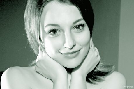 Rylsky Art: Schöner Teenager Nikia streift ihr schwarzes Kleid und posiert nackt im Fenster