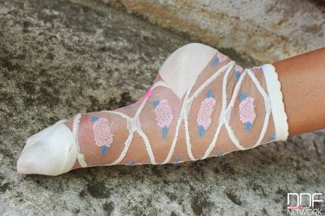 Porn World: Blondes britisches Babe Danielle Maye zeigt ihre großen Titten und ihren heißen Arsch im Freien