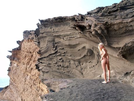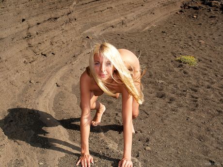 Erotic Beauty: Blonde Teen Judit posiert ganz nackt an einem Sandstrand