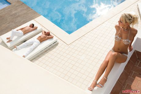 Private: Blonde mit großen Titten Jennifer Liebe wird doppelt in einem Dreier am Pool gefickt